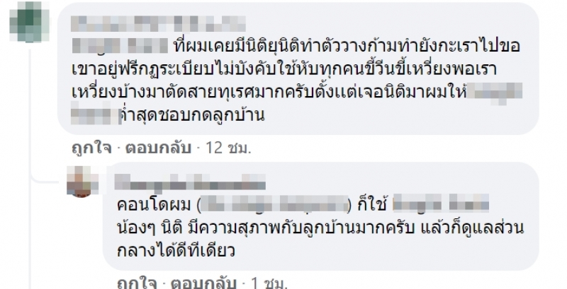 ในขณะที่อีกฝั่งที่อ้างตัวว่าเป็นลูกบ้านของคอนโดแห่งนี้เหมือนกัน บอกว่า นิติฯ แห่งนี้ก็ใช่ว่าจะดี ลูกบ้านหลายคนไม่พอใจในเรื่องการจัดการปัญหาต่าง ๆ ของนิติฯ ตั้งแต่เรื่องเล็กไปจนถึงเรื่องใหญ่ และเรื่องนี้ต้องดูดี ๆ ว่า ทั้ง 2 ฝ่ายเคยมีปัญหากันมาก่อนหรือไม่ นิติฯ ไปทำอะไรให้ลูกบ้านไม่พอใจจนสะสมมาลงมือลงไม้หรือเปล่า