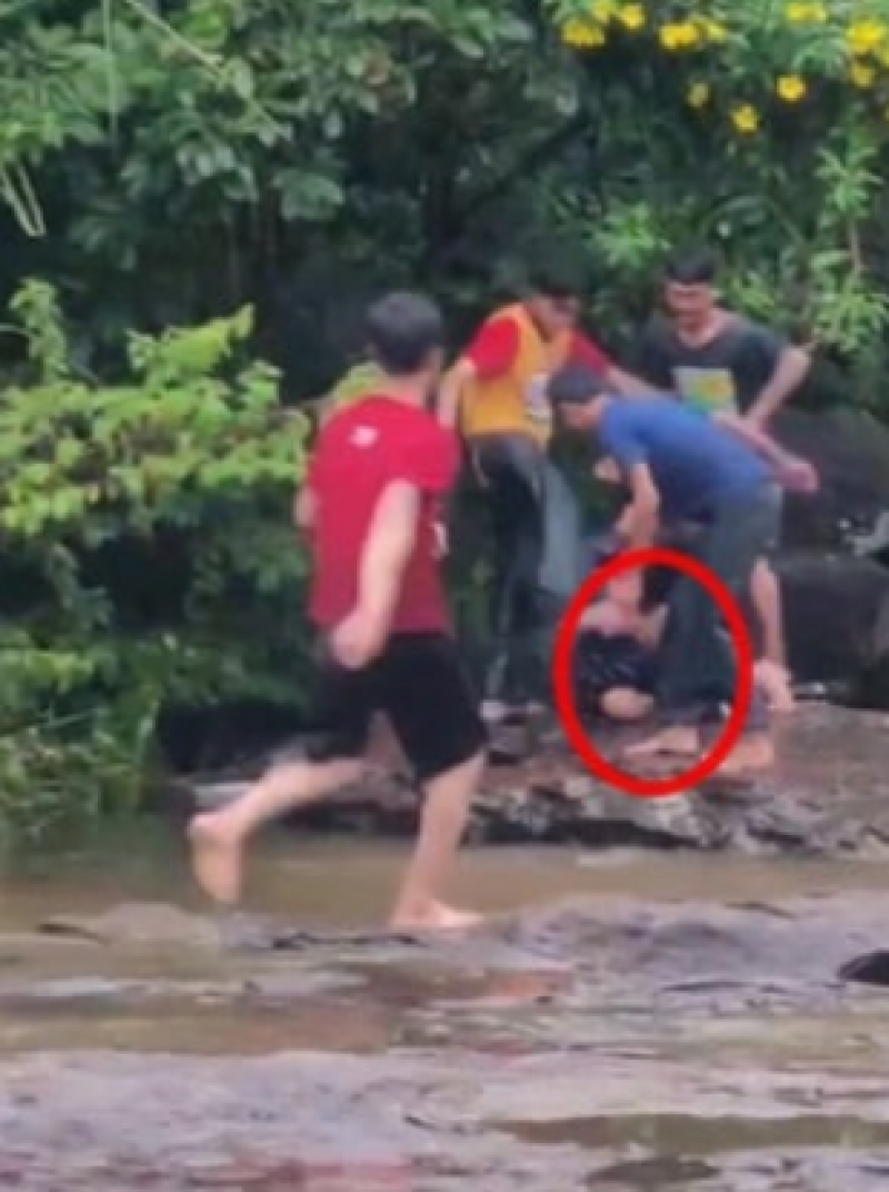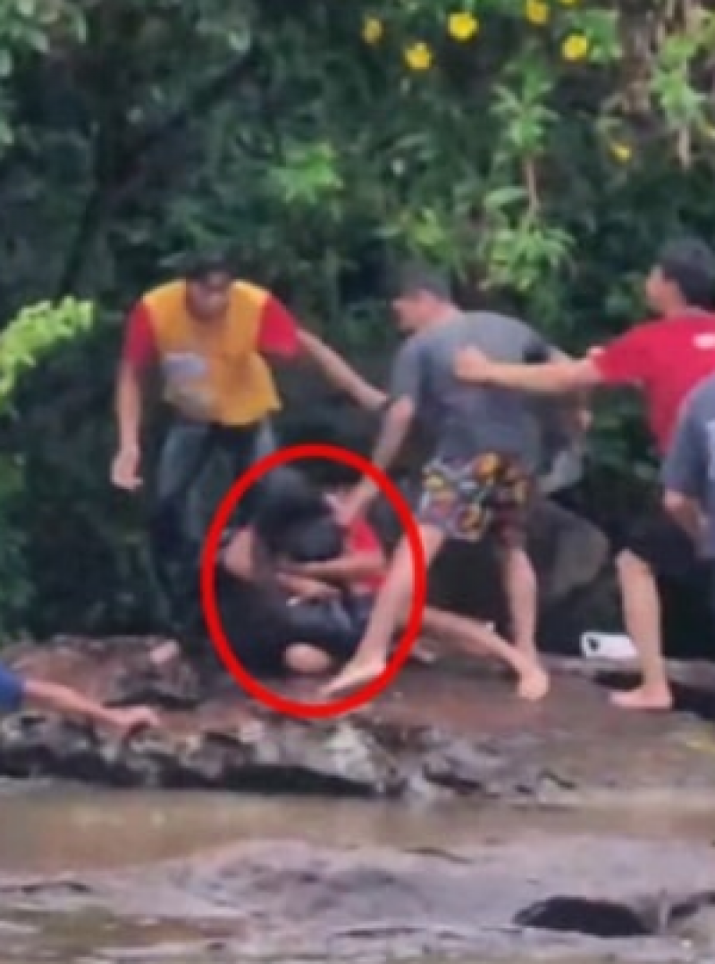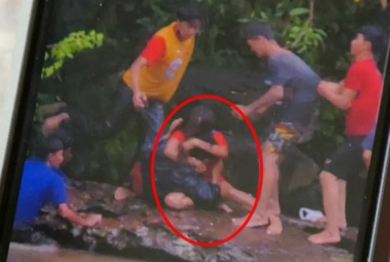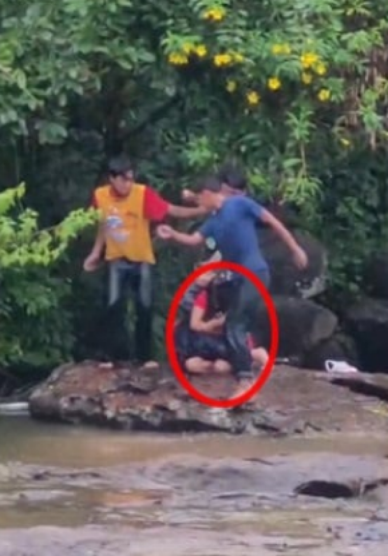 ระหว่างนั้นได้ยินเสียงคนร้องก่อนและเสียงขวดแตกตามมา จึงรีบหันกล้องไปตามเสียงที่กำลังชุลมุนและบันทึกไว้ได้ดังกล่าว เห็นผู้หญิงกอดผู้ชายไว้และร้องเสียงดัง กลุ่มวัยรุ่น 3 คนก็รุมทำร้ายโดยไม่ดูว่าจะถูกผู้หญิงหรือไม่ ทั้งที่เพื่อนเข้าไปห้าม 2คนก็ไม่ฟัง เพื่อนที่ห้ามก็ว่าเพื่อนที่รุมตีว่าไปตีเขาทำไม ซึ่งคนที่โดนตีก็มากับครอบครัวทั้งป้า และลูกหลาน เด็กๆ หอบลูกหอบหลานวิ่งขึ้นไป ซึ่งครอบครัวดังกล่าวนั่งอยู่ห่างจากกลุ่มวัยรุ่นประมาณ 20 เมตร ซึ่งก่อนหน้านี้เห็นกลุ่มวัยรุ่นรวมตัวกันเกือบ 20 คน มี 3 คนนี้ที่มารุมทำร้ายกลางธารน้ำไหล