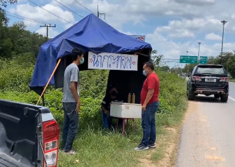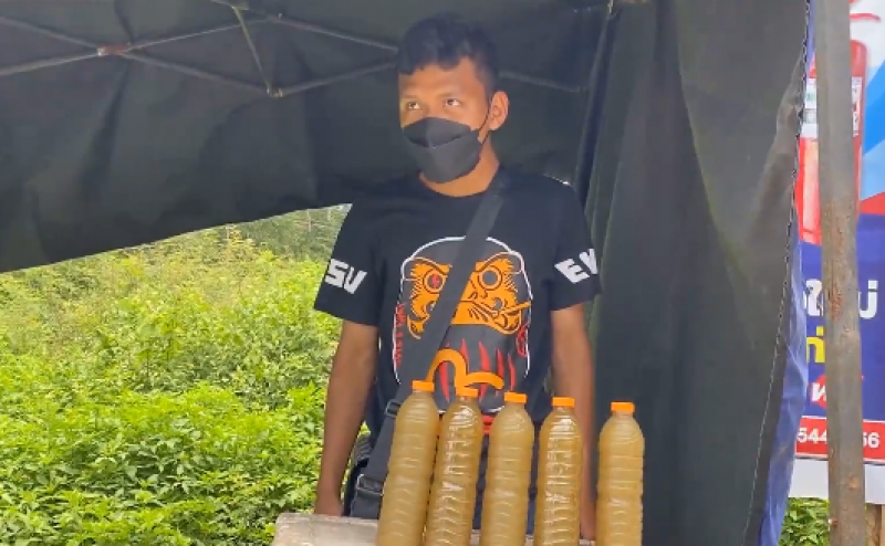 บังเหลาะ และบังหมัด เปิดเผยว่า ได้ต้มน้ำใบกระท่อมสดออแกนิคใส่ขวดขนาด 600 มิลลิลิตร แช่เย็นพร้อมดื่มมาเปิดซุ้มขายริมถนนเป็นวันแรก พร้อมกับขึ้นป้ายอย่างชัดเจนว่า น้ำกระท่อม ขวดละ 40 บาท