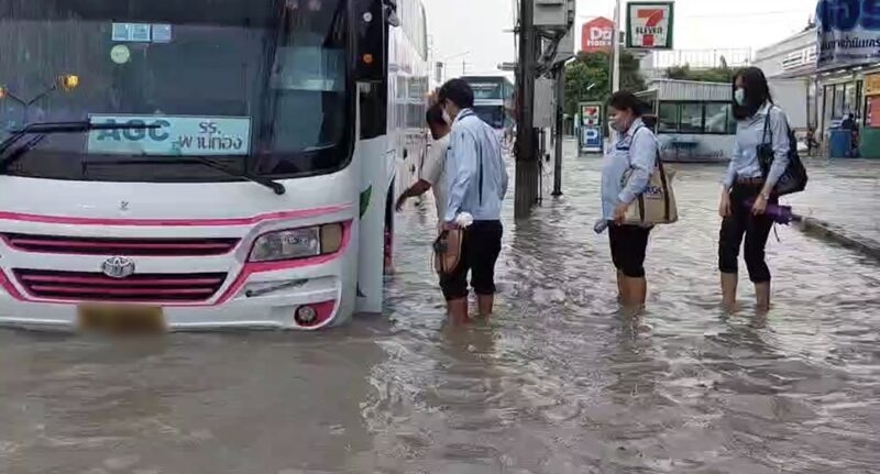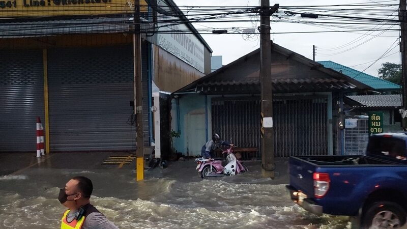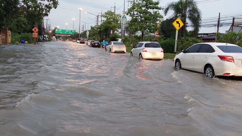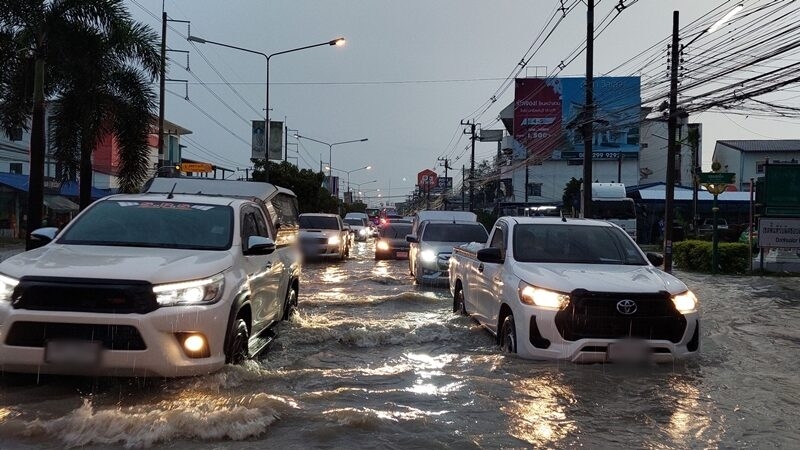 ฝนตกชลบุรีทั้งคืน น้ำท่วมทำรถติดยาว 5 กม.