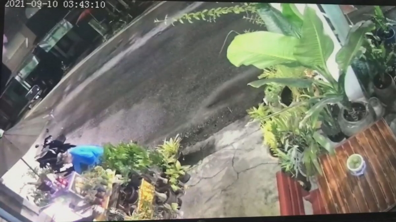 ตรวจสอบจากกล้องวงจรปิด2 กล้องพบว่าในเวลา 03.42 น.คืนที่ผ่านมา ได้มีชายหนุ่มสวมใส่เสื้อแขนยาวสีฟ้า กางเกงขายาวสีลูกกวาด สวมหมวกและหน้ากากปิดบังใบหน้า ขับขี่รถจักรยานยนต์ฮอนด้าสีดำ หมายเลขทะเบียน1 กฃ พังงา 9695 หรือ 9690