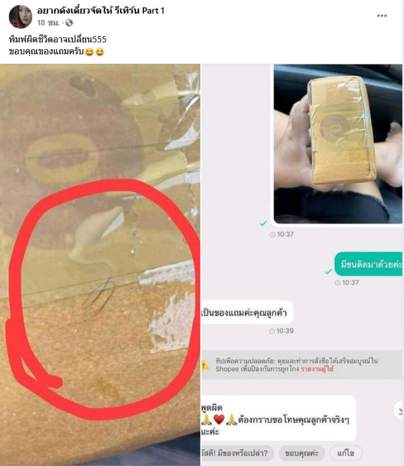กลายเป็นอีกหนึ่งเรื่องราวที่สร้างความฮือฮาเป็นอย่างมากในโลกโซเชียล หลังจากที่ทางเพจ อยากดังเดี๋ยวจัดให้ รีเทิร์น Part 1 ได้มีการเผยภาพกล่องพัสดุของสาวรายหนึ่ง ซึ่งเธอได้ทักไปหาแม่ค้า เนื่องจากว่าที่ข้างกล่องพัสดุ มีเส้น ขนปริศนา ติดมาด้วย จึงได้ทักแชทไปแจ้งกับทางแม่ค้า