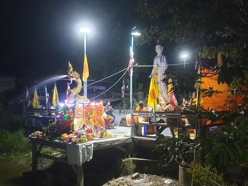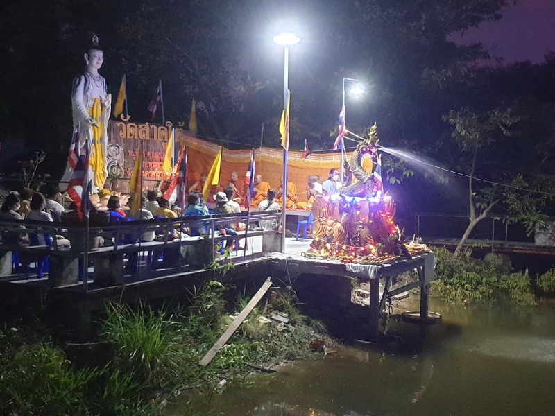 เมื่อวันที่ 12 ก.ย.64 ที่ผ่านมา มีรายงานว่า ที่วัดสาคูใต้ หมู่ 3 ต.ช้างซ้าย อ.พระพรหม จ.นครศรีธรรมราช พระอธิการสมชาย อภิชโย เจ้าอาวาสวัดสาคูใต้ นิมนต์พระเกจิอาจารย์ชื่อดังจังหวัดนครศรีธรรมราช จำนวน 5 รูป มาประกอบพิธีประดิษฐานและสมโภชรูปปั้นพญานาคราชขนาดใหญ่ บริเวณริมบึงหน้าวัดเนื้อที่กว้างประมาณ 3 ไร่เศษ โดยมีชาวบ้านในพื้นที่ประมาณ 50 คนมาร่วมในพิธี ท่ามกลางมาตรการการควบคุมป้องกัน อย่างเคร่งครัด