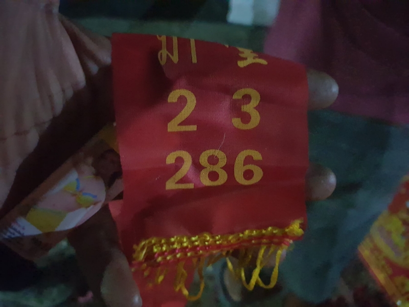 หลังจากนั้นเจ้าหน้าที่ทำการจุดประทัด 2 กล่อง ๆ ละ 10,000 นัด ท่ามกลางบรรดาคอหวยที่เฝารอดูเลขหางประทัดเพื่อนำไปซื้อรีางวัลในวันที่ 16 ก.ย.64 และเมื่อหมดเสียงประทัดผู้คนต่างเข้าไปตรวจดูเลขห่างประทัดทั้ง 2 ชุด พบว่าชุดเลขที่ 1เลข 2 ตัว 3 ตัว ประกอบด้วย 23,และ 268 ส่วนชุดที่ 2 พบว่ามีเฉพาะเลข 3 ตัว คือหมายเลข 868