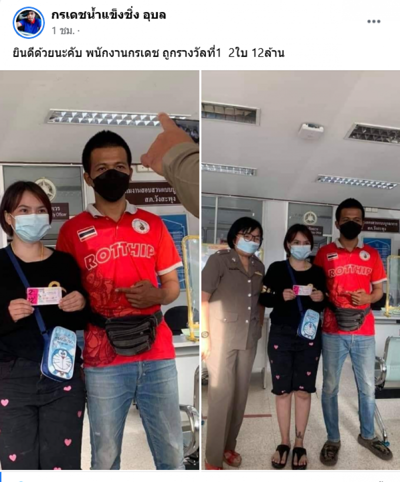 ล่าสุดในโลกออนไลน์มีรายงานว่า ผู้ใชเเฟซบุ๊ก กรเดชน้ำแข็งชิ่ง อุบล ได้โพสต์ภาพ พนักงานคนหนึ่ง ซึ่งเป็นผู้ถูกรางวัลที่ 1 โดยระบุว่า ยินดีด้วยนะคับ พนักงานกรเดช ถูกรางวัลที่1 2ใบ 12ล้าน ท่ามกลาวชาวโซเชียลที่มาร่วมแสดงความคิดเห็นยินดี