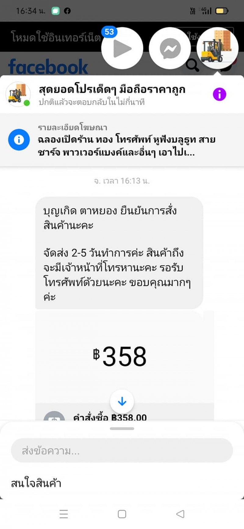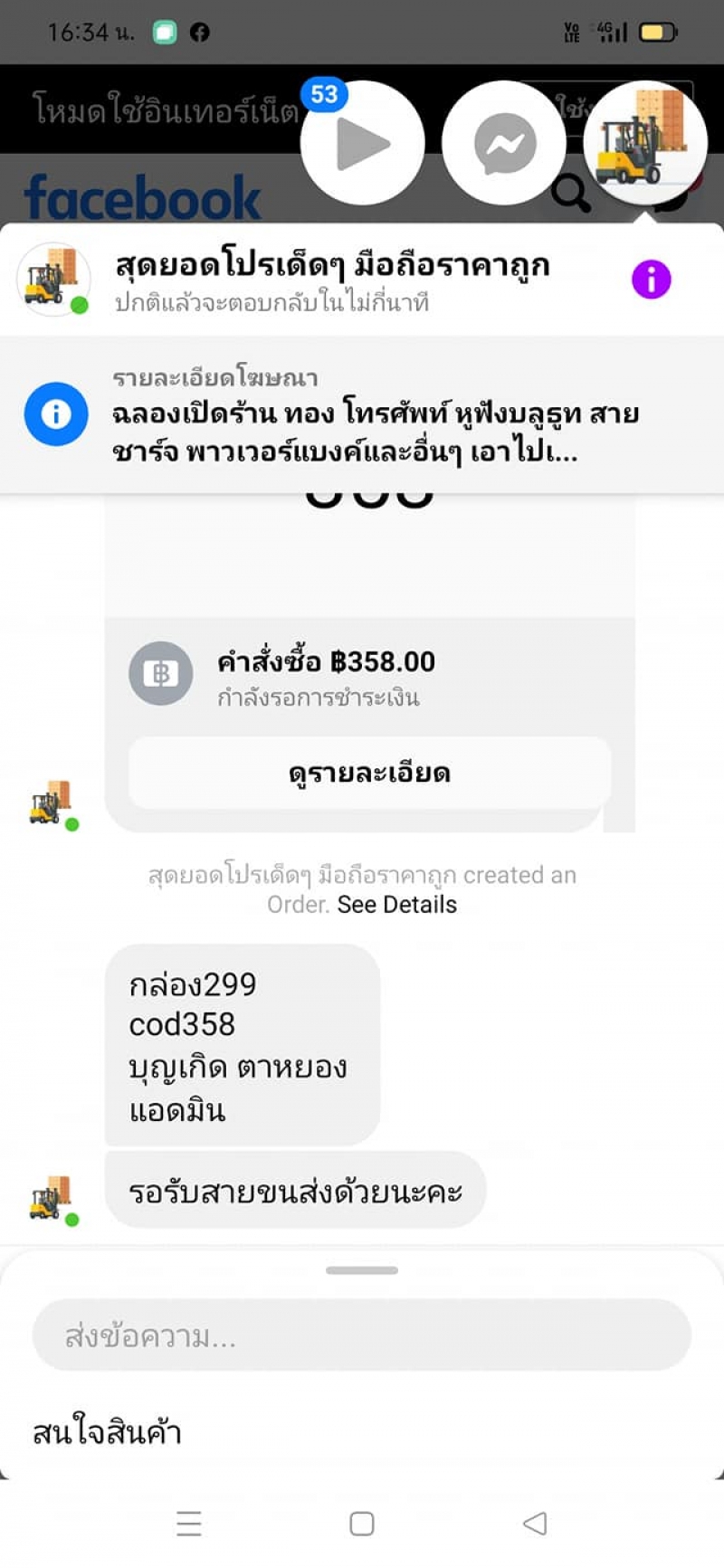 พระบุญเกิด กุสรกิจตุโต อายุ 42 ปี พระลูกวัด วัดโฆษาท่าช้าง หมู่ 2 ต.ห้วยไร่ อ.หล่มสัก เล่าว่า พอดีเห็นในเพจ มีโทรศัพท์และอุปกรณ์หลายอย่าง เลยสนใจเห็นว่าถูกดี ราคา 299 บาท รวมค่าส่ง 358 บาท พอสั่งมาแล้ว ได้แกะดูพบว่าไม่ตรงตามที่สั่ง คือ ได้สายชาร์จ กับ สมอลทอร์คเท่านั้น สาเหตุที่สั่งออนไลน์ เพราะว่าช่วงนี้เศรษฐกิจก็ไม่ดี เห็นว่าราคาถูก และหลานก็อยากได้โทรศัพท์ไปเรียนออนไลน์ จึงหลงสั่งซื้อ แบบเก็บเงินปลายทาง โดยสั่งครั้งแรก ก็โดนกับตัวเองเลย ทั้งตกใจและเสียความรู้สึกและเสียดายเงิน