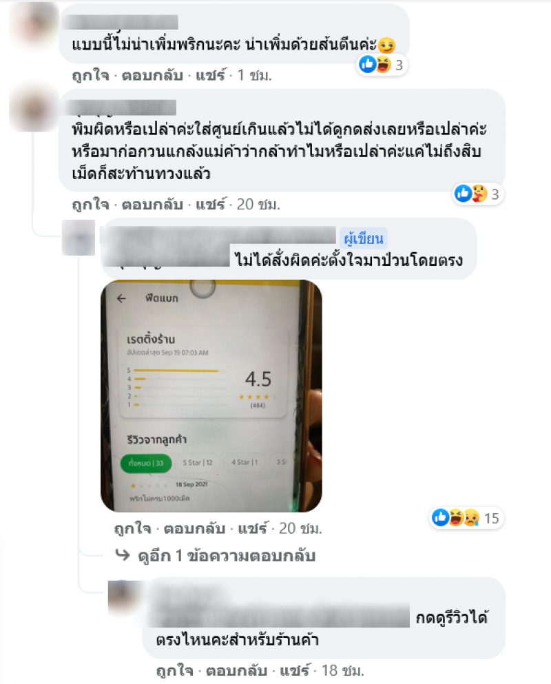 ซึ่งต่อมา ทางด้านแม่ค้าก็ได้มาแจ้งเพิ่มเติม มาอัฟเดตล่าสุดเช้านี้ค่าา ลูกค้ามาคอมแพลนว่าพริกไม่ครบ1000แถมลดดาวให้ทางร้านคะแนนตกอีก สรุปล คคนนี้ต้งการอะไร