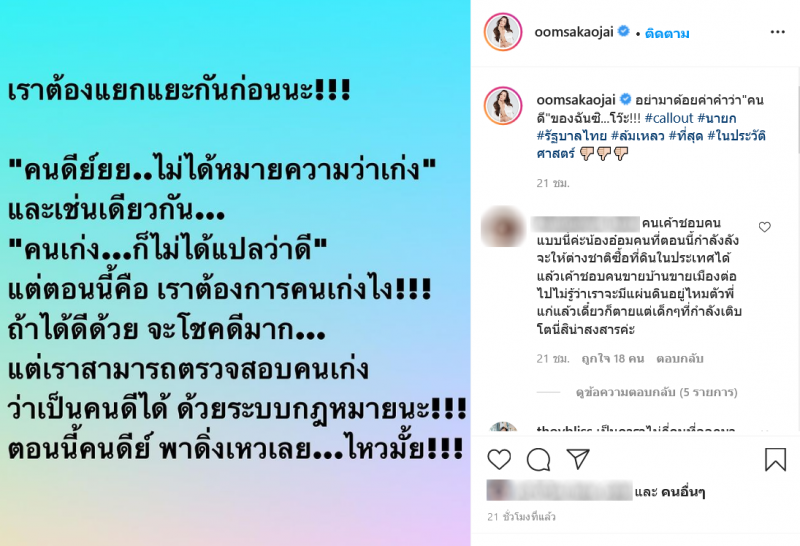 ล่าสุด อ๋อม สกาวใจ นักแสดงสาวชื่อดัง ก็เป็นอีกคนหนึ่งที่ยืนยัดคัดค้านเรื่องการขายที่ดินให้ชาวต่างชาติถือครองกรรมสิทธิ์ โดย อ๋อม ได้โพสต์ข้อความลงไอจี oomsakaojai