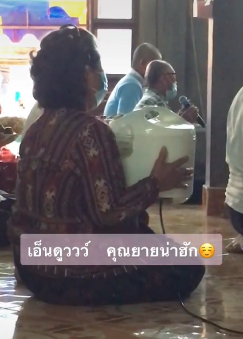 กลายเป็นอีกหนึ่งภาพ ที่เรียกเสียงฮือฮาในโซเชียล หลังจากที่ผู้ใช้ tiktok ชื่อ ohmmy rapat ได้เผยแพร่คลิปคุณยายท่านหนึ่งที่หอบหม้อหุงที่ยังหุงไม่เสร็จมานั่งเสียบปลั๊กขณะทำบุญ จนชาวโซเชียลที่มาเห็นคลิปดังกล่าว ต่างเขามาแซวคุณยายด้วยความน่ารัก คาดว่ายายอาจจะตื่นสายหุงข้าวมาถวายพระไม่ทัน เลยยกหม้อมาหุงที่วัดเลย โดยผู้โพสต์โดยระบุ...ทำบุญตักบาตรเช้า