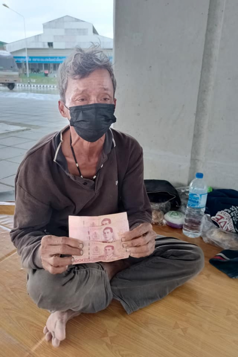 แกจะกลับเพชรบูรณ์..ผมปลอบใจแกอย่างมากๆ ว่า..อย่าคิดมากนะครับ..ผมให้เงินไว้ซื้อข้าวกินให้อิ่มก่อน..อยู่ตรงนี้ดีแล้ว เดี๋ยวจะมีคนมาช่วยอีกมากมาย จะมีเงินใช้ และได้กลับบ้าน เดี๋ยวผมกลับมาช่วยอีก วันนี้ยังไงก็ไม่ทันรถโดยสารแล้วครับ(ใต้สะพานแยกหนองชาก