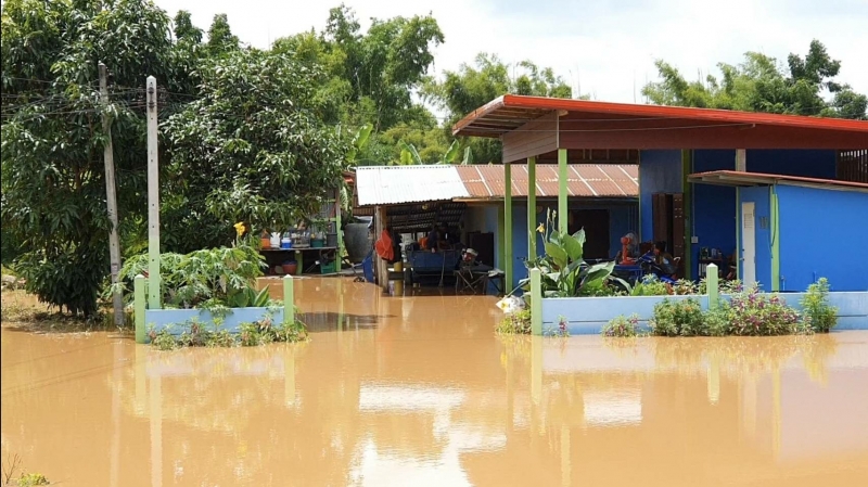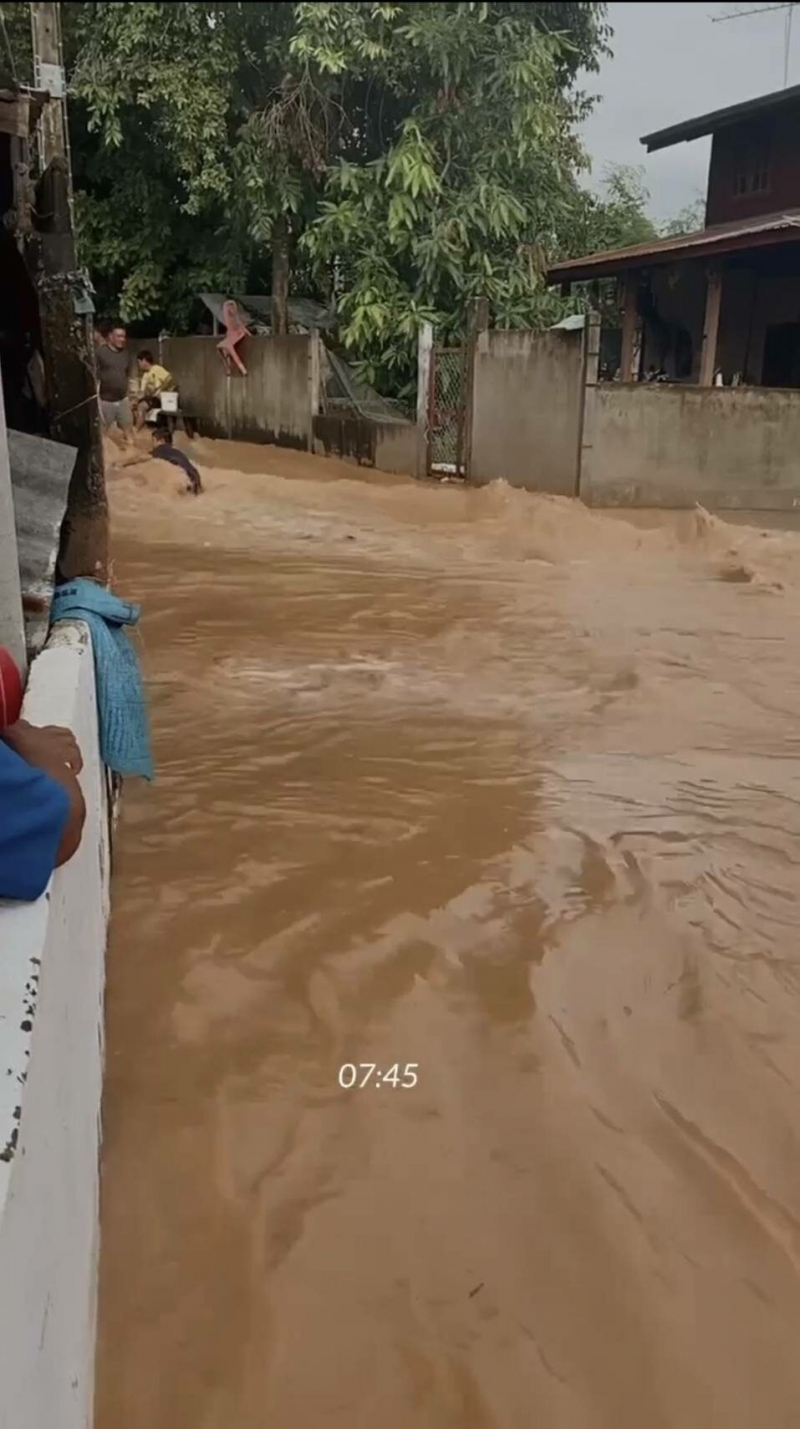 ส่งผลให้มวลน้ำไหล เข้าท่วมพื้นที่ ในหมู่บ้านอย่างรวดเร็ว ข้าวของเครื่องใช้ภายในบ้านได้รับผลกระทบหลายสิบหลังคาเรือน เบื้องต้นผู้นำชุมชนได้ระดมชาวบ้านและกู้ภัยเข้าทำการช่วยเหลือชาวบ้านออกมายังที่ปลอดภัย รวมถึงข้าวของเครื่องใช้ และสัตว์เลี้ยงขึ้นบนที่สูงเพื่อความปลอดภัย