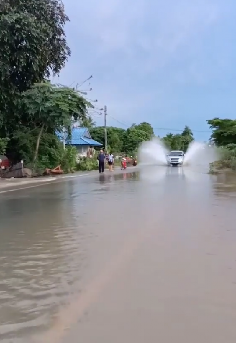 โดยในคลิปเป็นภาพเหตุการณ์ ขณะที่รถกระบะคันหนึ่ง ได้ขับขี่มาด้วยความเร็ว ฝ่าสายน้ำบนถนน ทำให้น้ำกระเด็นไปโดนชาวบ้านที่อยู่สองข้างทาง ชาวโซเชียลต่างวิพากษ์วิจารณ์ว่า รถกระบะไม่ควรทำแบบนั้น ควรจะฉลอรถลงบ้าง