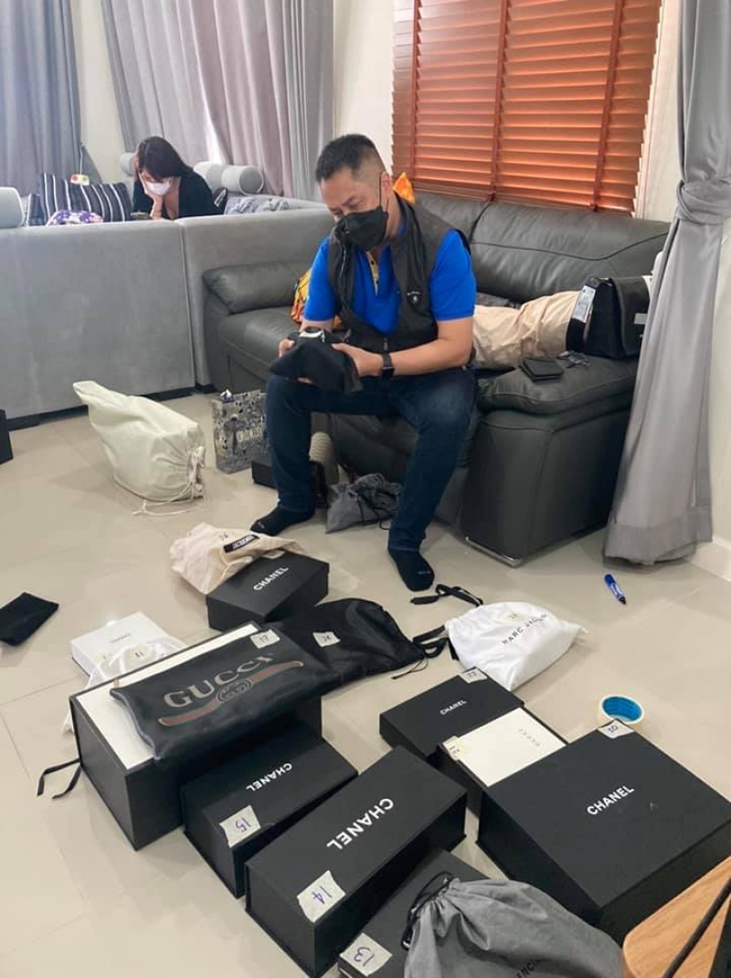 จากนั้นตำรวจได้โชว์หมายค้น เนื่องจากสืบทราบว่า น.ส.พิยดา ใช้ข้อมูลทางอินเตอร์เน็ตเป็นชื่อภรรยาของตน จึงต้องอนุญาตให้ค้นบ้าน ปรากฏว่าตำรวจได้ยึดของแบรนด์เนมและรถของ น.ส.พิยดา ตนก็ให้ความร่วมมือเป็นอย่างดี เนื่องจากไม่เคยรู้มาก่อนว่า น.ส พิยดา ไปก่อเหตุ หลอก คนอื่นมากขนาดนี้