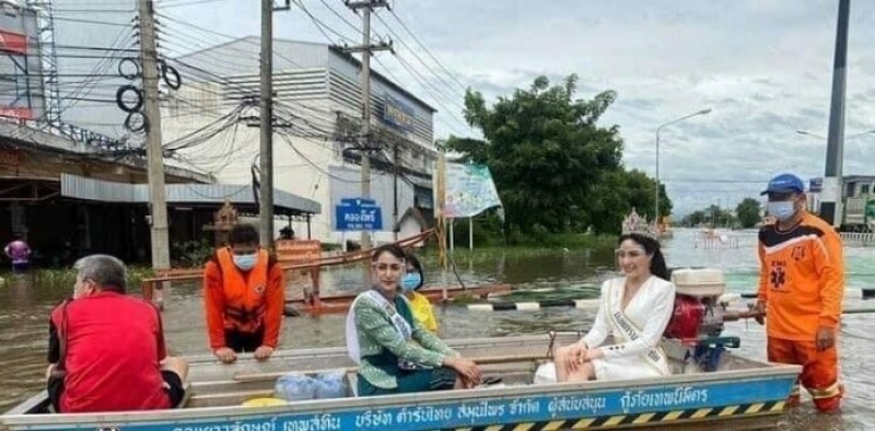 เมื่อวันที่ 26 ก.ย.64 จากกรณี เพจ สุโขทัย พาเที่ยว โพสต์รูปภาพสาวงามจากเวทีมิสแกรนด์ ได้แก่ มิสแกรนด์สุโขทัย 2021 และผู้เข้าประกวดมิสแกรนด์สกลนคร 2021 ลงพื้นที่ช่วยน้ำท่วมสุโขทัยเมื่อวันที่ 25 ก.ย.ที่ผ่านมา โดยเป็นภาพทั้งคู่แต่งกายในชุดสวยงาม มิสแกรนด์สุโขทัยสวมมงกุฎนั่งอยู่บนเรือเล็ก กลายเป็นประเด็นในโลกออนไลน์ทันที