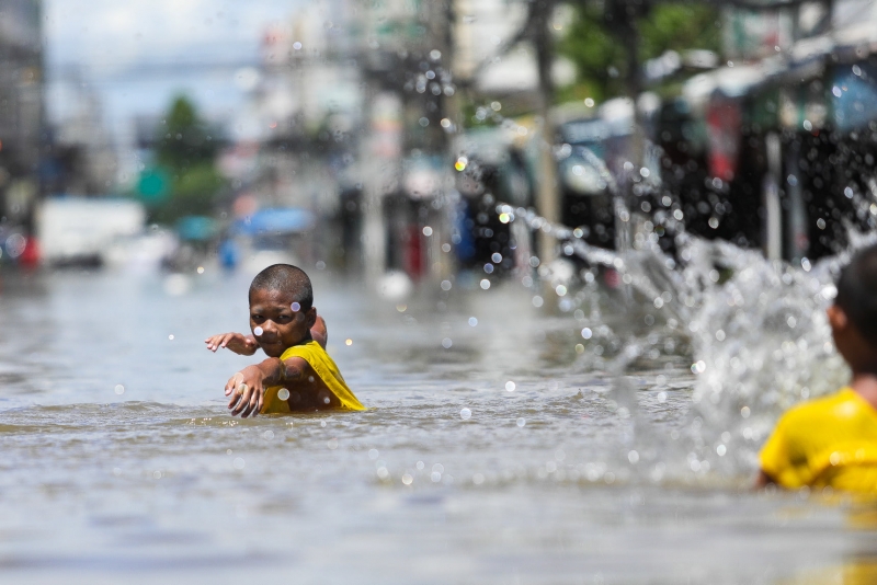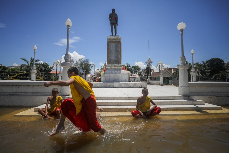 แต่ที่สะดุดตาคงหนีไม่พ้น สามเณรหลายรูป จากวัดทรงศิลา รวมกลุ่มลงเล่นน้ำอย่างครึกครื้น ต่างสวมอังสะสีเหลืองสด สบงสีกลัก ออกมาเล่นน้ำ ผลัดกันกระโจนลงน้ำไปมากันอย่างสนุกสนาน