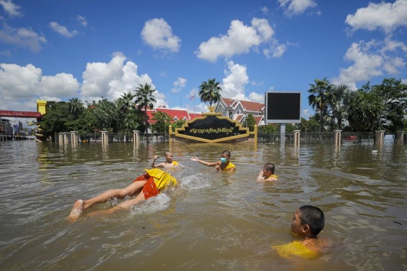 เณรน้อย บอกว่าได้ขออนุญาตหลวงพ่อแล้ว หลวงพ่อไม่ได้ว่าอะไร ย้ำว่า ไม่ได้ออกมาเล่นน้ำอย่างเดียว แต่มาช่วยเก็บขยะที่ลอยมากับน้ำด้วย แต่ดูสภาพแล้วน่าจะเป็นการเก็บขยะสามนาที เล่นน้ำสิบนาทีเสียมากว่า(เมื่อวันที่ 28 กันยายน 2564)