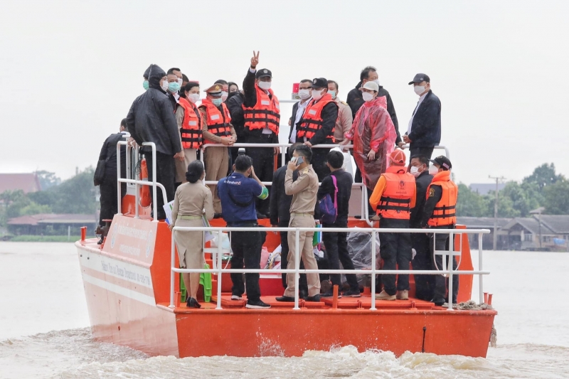 ที่ท่าน้ำเทศบาลปากเกร็ด จังหวัดนนทบุรี พล.อ.ประยุทธ์ จันทร์โอชา นายกรัฐมนตรีและรัฐมนตรีว่าการกระทรวงกลาโหม พร้อมด้วย พล.อ.อนุพงษ์ เผ่าจินดารัฐมนตรีว่าการกระทรวงมหาดไทย นายสุชาติ ชมกลิ่น รัฐมนตรีว่าการกระทรวงแรงงาน นายชัยวุฒิ ธนาคมานุสรณ์ รัฐมนตรีว่าการกระทรวงดิจิทัลเพื่อเศรษฐกิจและสังคม (ดีอีเอส)