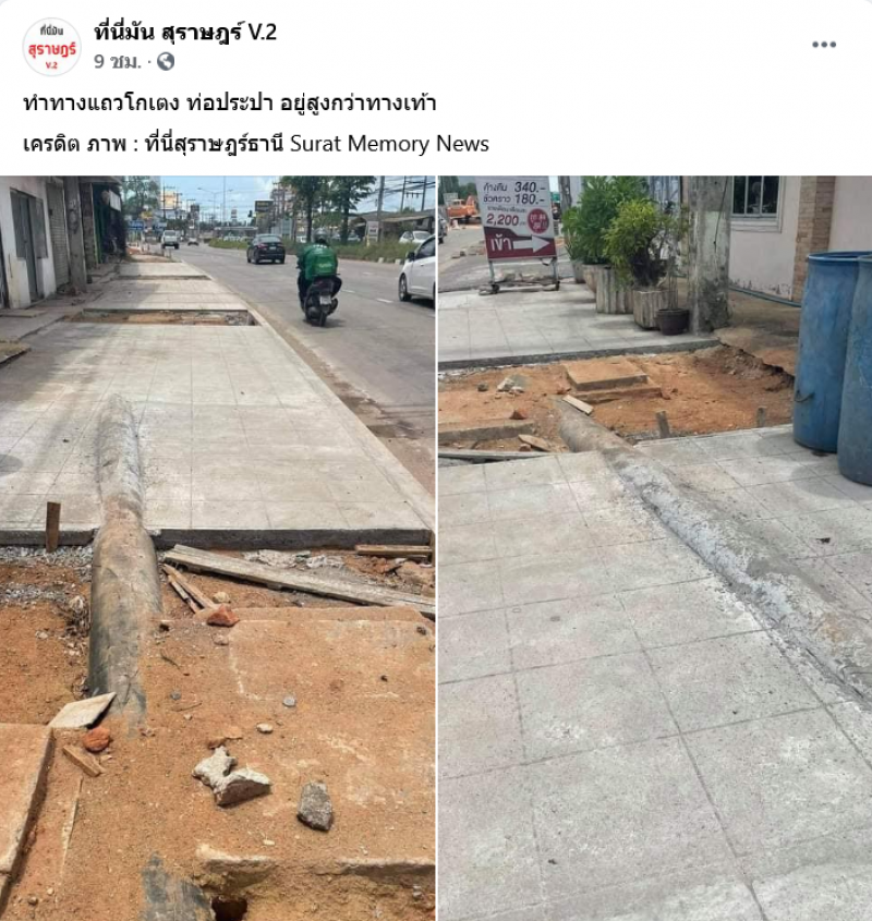 จากกรณี เพจ ที่นี่มัน สุราษฎร์ V.2 ได้โพสต์ภาพท่อประปา ที่ผุดขึ้นมากลางทางเดินเท้า บริเวณหน้ารีสอร์ตแห่งหนึ่ง ก่อนถึงสามแยกโกเตง เขตเทศบาลตำบลวัดประดู่ อำเภอเมืองสุราษฎร์ธานี ทำให้มีคนเข้ามาแสดงความคิดเห็น วิพากษ์วิจารณ์เป็นจำนวนมาก