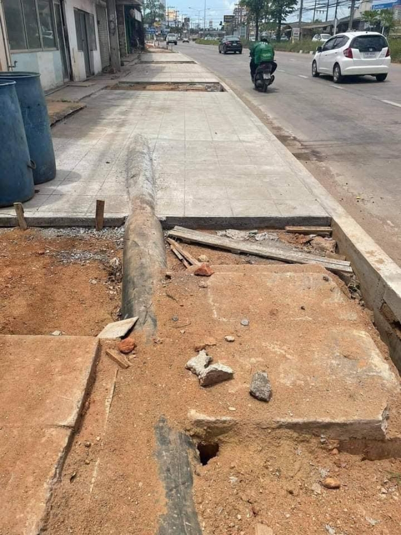 สั่งแก้ไขแล้ว ท่อประปาโผล่กลางทางเท้า