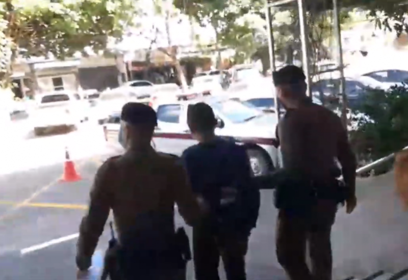 ภายหลังจากเดินเข้าไปทำทีขอดูสร้อยคอทองคำเส้นละ 10 บาท 2 เส้น มาให้ดู เมื่อหยิบสร้อยทองมาได้ก็รีบวิ่งหนีต่อหน้าต่อตาออกจากร้านไปได้ 50 เมตร รปภ.ของห้างที่ใกล้เคียง 2 นาย ได้รับแจ้งรีบวิ่งเข้ามาสกัดจับล้มลง จังหวะเดียวกับ ด.ต. บุญชนะ พุ่มมาลัย ผบ.หมู่ สภ.เมือง ทำหน้าที่สายตรวจ 191 เดินมาตรวจร้านทองได้เข้าช่วยใส่กุญแจมือและรายงานให้ พ.ต.อ.โสภณ เฟืองม่วง สภ.เมือง นำกำลังมาควบคุมไปสอบสวนที่ สภ.เมือง