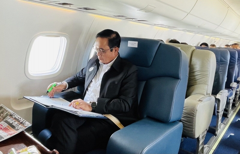วันที่ 7 ต.ค.64 ที่ท่าอากาศยานทหาร 2 กองบิน 6(บน.6) ดอนเมือง กทม. พล.อ.ประยุทธ์ จันทร์โอชา นายกรัฐมนตรี และ รมว.กลาโหม เดินทางลงพื้นที่ตรวจราชการ จ.นครศรีธรรมราช โดยมี พล.อ.อนุพงษ์ เผ่าจินดา รมว.มหาดไทย