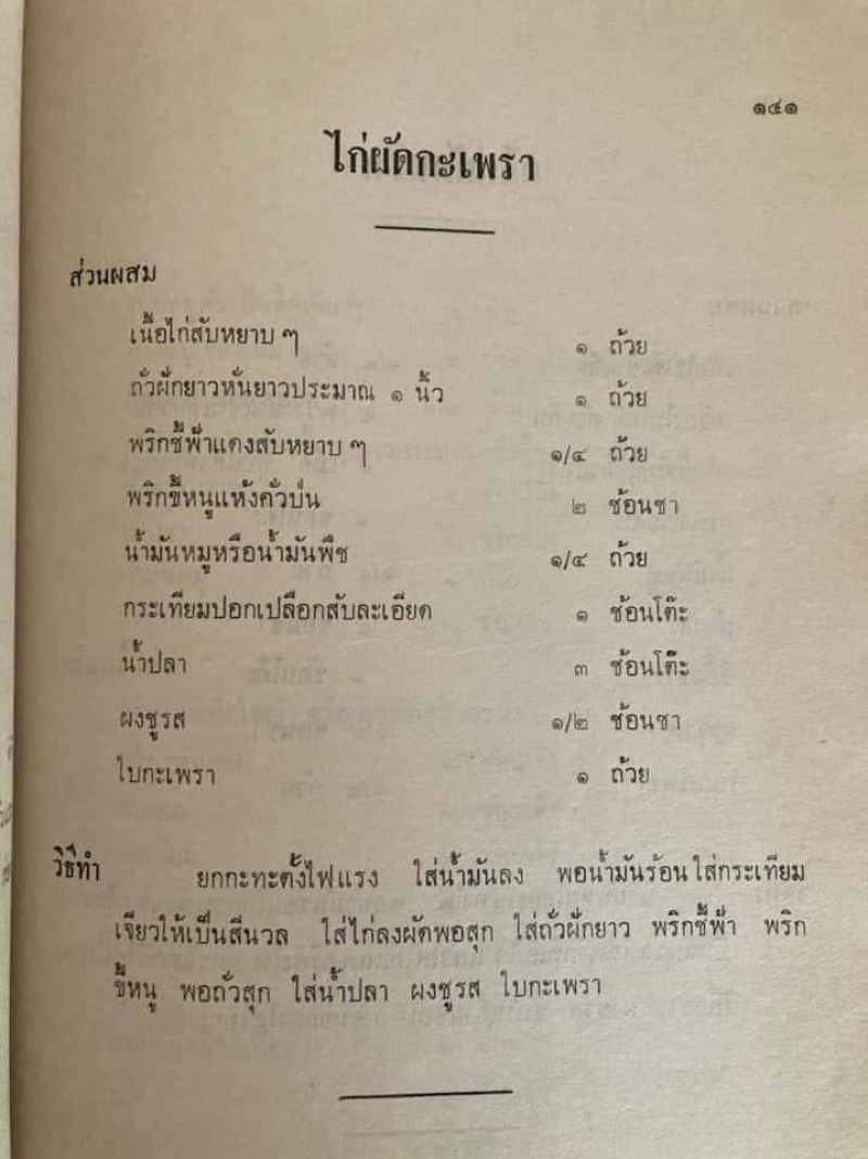 เผยหลักฐาน ผัดกะเพรา ใส่ถั่วฝักยาว มีมานานกว่า 50 ปี