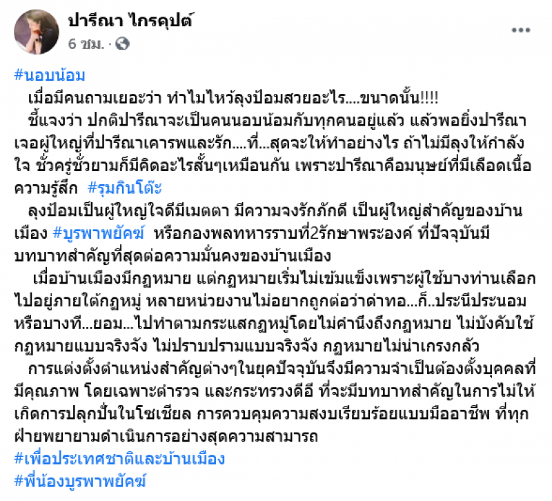 ล่าสุด ปารีณา ไกรคุปต์ ได้โพสต์ผ่านเฟซบุ๊กส่วนตัวระบุข้อความพร้อมรูปภาพว่า