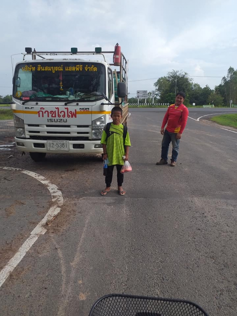 แทนที่เขาจะล้มเลิกความตั้งใจเป็นนักฟุตบอลพอดีรถวิ่งส่งแก็สตามร้านค้าเขาไปส่งแถวๆนั้นพอดีและขากลับเขาต้องกลับมาเส้นทาง ปราสาท/สังขะเจ้าหนูคนนี้จึงขออาศัยรถเขามาด้วยโดยขอลงที่เส้น 24หน้า รร.กันทรารามและให้โค้ชไปรับ. มาครับยินดีต้อนรับเข้ามาเป็นลูกชายโค้ชอีกคนครับ สังเกตุถุงใส่รองเท้าครับ