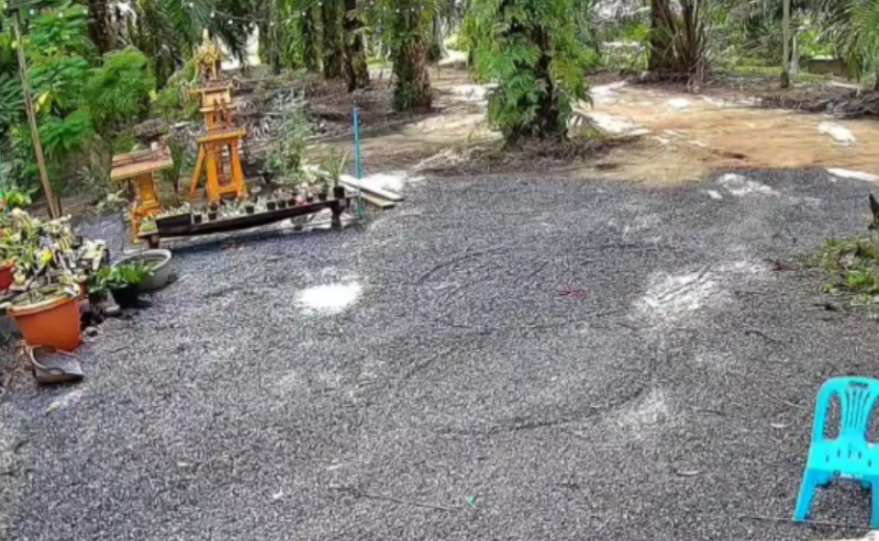 นายอิศเรศ เพ็ชรร่วง อายุ 35 ปี อยู่บ้านเลขที่ 206 ม.5 ต.พรุดินนา อ.คลองท่อม ซึ่งเป็นสมาชิกกู้ภัยอัมรินทร์ใต้ ระบุว่า ตอนเช้าวันนี้ ตนตื่นขึ้นมาเห็นที่ลานพื้นหน้าบ้านที่ปูด้วยหินเกล็ด มีรอยวาดเป็นทางวงกลมคล้ายเลข 6 เลข 0 และ 8 ไว้ ก็เลยสงสัยตอนแรกคิดว่าคงเป็นวัยรุ่นเข้ามาวาดไว้ จึงได้เปิดกล้องวงจรปิดดูก็พบว่าที่แท้เป็นสุนัข