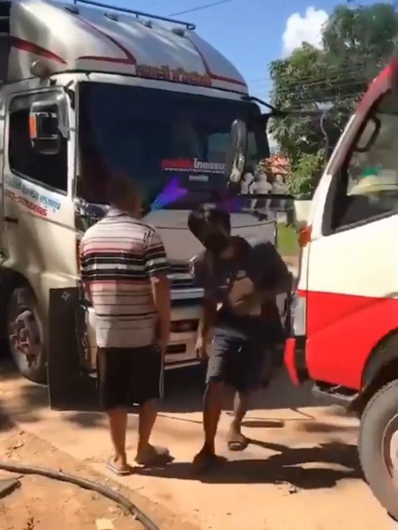 หนุ่มขับสิบล้อ ไปเติมน้ำมัน