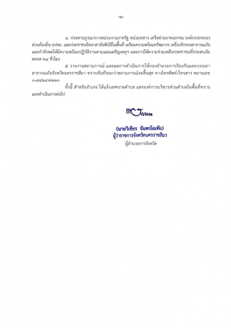 หลังน้ำในเขื่อนใกล้ล้น เเละเพื่อรองรับน้ำที่อาจจะเพิ่มขึ้นจากหย่อมความกดอากาศต่ำ ที่จะทำให้เกิดฝนตกหนักในภาคอีสานช่วงวันที่ 27-28 ต.ค. นี้ พื้นที่ติดลุ่มน้ำลำตะคองเเละลำมูล ขอให้ติดตามเฝ้าระวังอย่างใกล้ชิด