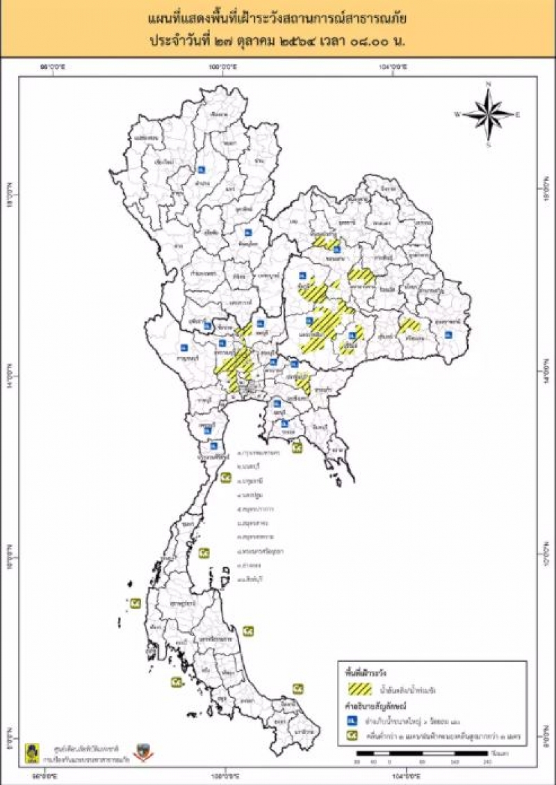 ปภ.เตือน 15 จังหวัด พื้นที่เฝ้าระวังน้ำ