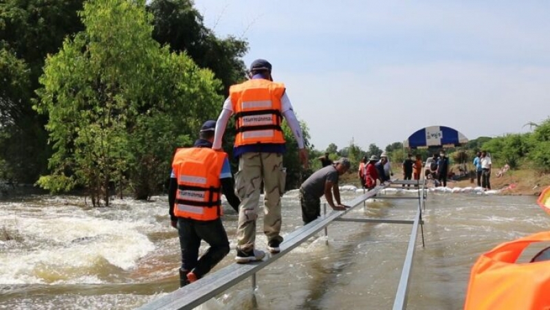 ถนนสายศรีบุญเรืองไปบ้านท่าม่วงและอีก 5 หมู่บ้านขาดนั้น รายงานให้ผู้ว่าราชการจังหวัดทราบเรื่องแล้ว ปภ.และชลประทานลงมาตรวจสอบแล้ว แต่ยังไม่สามารถซ่อมแซมหรือนำสะพานแบริ่งมาลงได้ เพราะน้ำไหลเชี่ยวและแรงมาก จึงต้องระงับการซ่อมแซมเอาไว้ก่อน รอน้ำแห้งจึงจะพิจารณาการซ่อมแซมถนนขาดอีกครั้ง