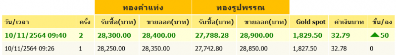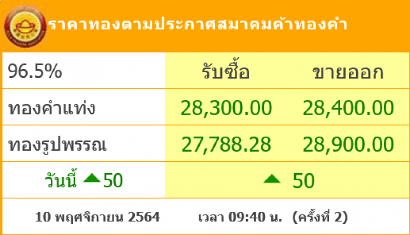 ล่าสุดเมื่อเวลา 09.40 ได้มีการปรับราคาทองครั้งที่ 2 ขึ้น 50 บาท สรุปราคาทองคำ วันที่ 10 พ.ย.2564