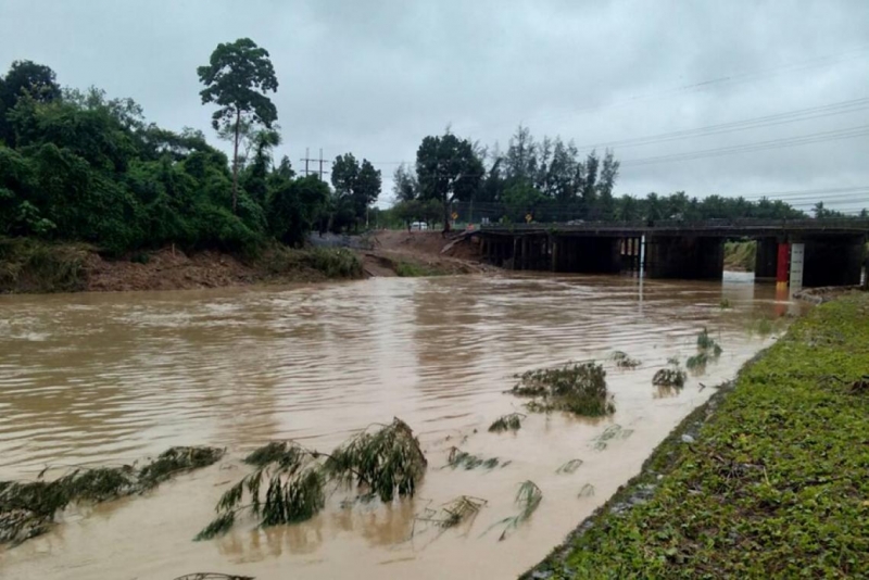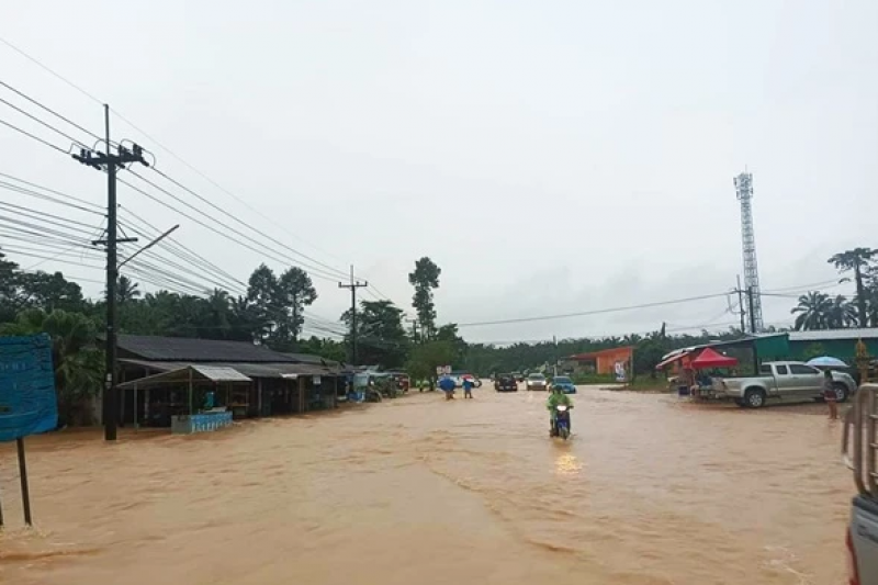 และล่องใต้ ตอน เขาบ่อ-ท่าทอง กม.11+500 ถึง กม.11+700 อ.เมือง จ.ชุมพร ระดับน้ำไหล่ทางและถนนสูง 10-30 ซม.รถทุกชนิดยังคงผ่านได้แต่ต้องใช้ความระมัดระวัง เป็นพิเศษเนื่องจากยังคงมีฝนตกลงมาอย่างต่อเนื่อง