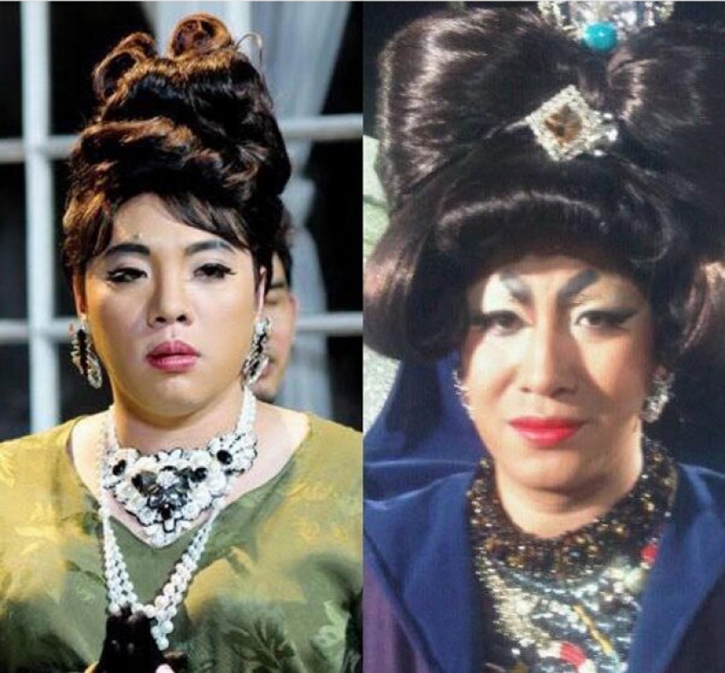 พี่ก็ไปที่กองถ่าย เสร็จปุ๊บเขาให้พี่นั่ง แล้วให้ช่างแต่งหน้ามาแต่งหน้าให้ แต่งไปแต่งมาก็เอ๊ะ ทำไมตาเป็นสีอะไรไม่รู้ เริ่มมีปากสีแดง แล้วเอาวิกมาใส่หัว ก็ถามว่าพี่ ผมเล่นเป็นอะไรเนี่ย