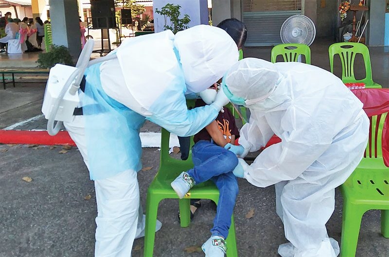 ขณะที่บรรยากาศภายในโรงเรียนอนุบาลวีรวิชญ์ ต.หนองยอง อ.ปากคาด คณะครูและเจ้าหน้าที่จากโรงพยาบาลปากคาด และ รพ.สต.หนองยอง ได้จัดเตรียมสถานที่ภายในอาคาร จำนวน 3 อาคาร