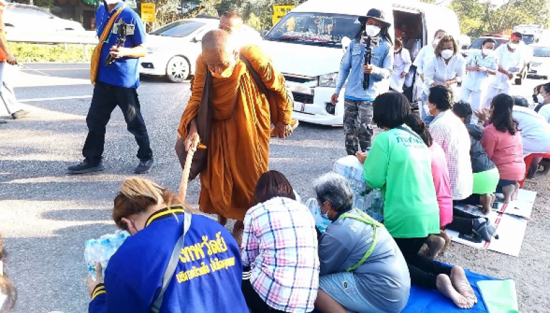 โดยมีหน่วยกู้ภัยในพื้นที่ อาสากู้ภัยทางหลวงดูแลตลอดเส้นทางที่เดินจาริกแสวงบุญ ท่ามกลางพุทธศาสนิกชนจำนวนมากรอถวายน้ำดื่มตลอดเส้นทางเดินริมถนนเพชรเกษมขาเข้า กทม.