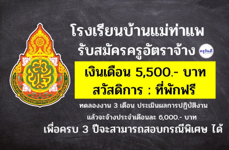 จากกรณีเพจ ครูวันดีดอทคอม-เปิดสอบครู สมัครงานราชการ โพสต์ข่าวประชาสัมพันธ์ ประกาศรับสมัครครูอัตราจ้าง ตำแหน่งครูผู้ช่วย โรงเรียนบ้านแม่ท่าแพ รับสมัครครูผู้สอนวิชาเอกปฐมวัย (มีใบประกอบวิชาชีพครู) เงินเดือน 5,500 บาท สวัสดิการ ที่พักฟรี ทดลองงาน 3 เดือน