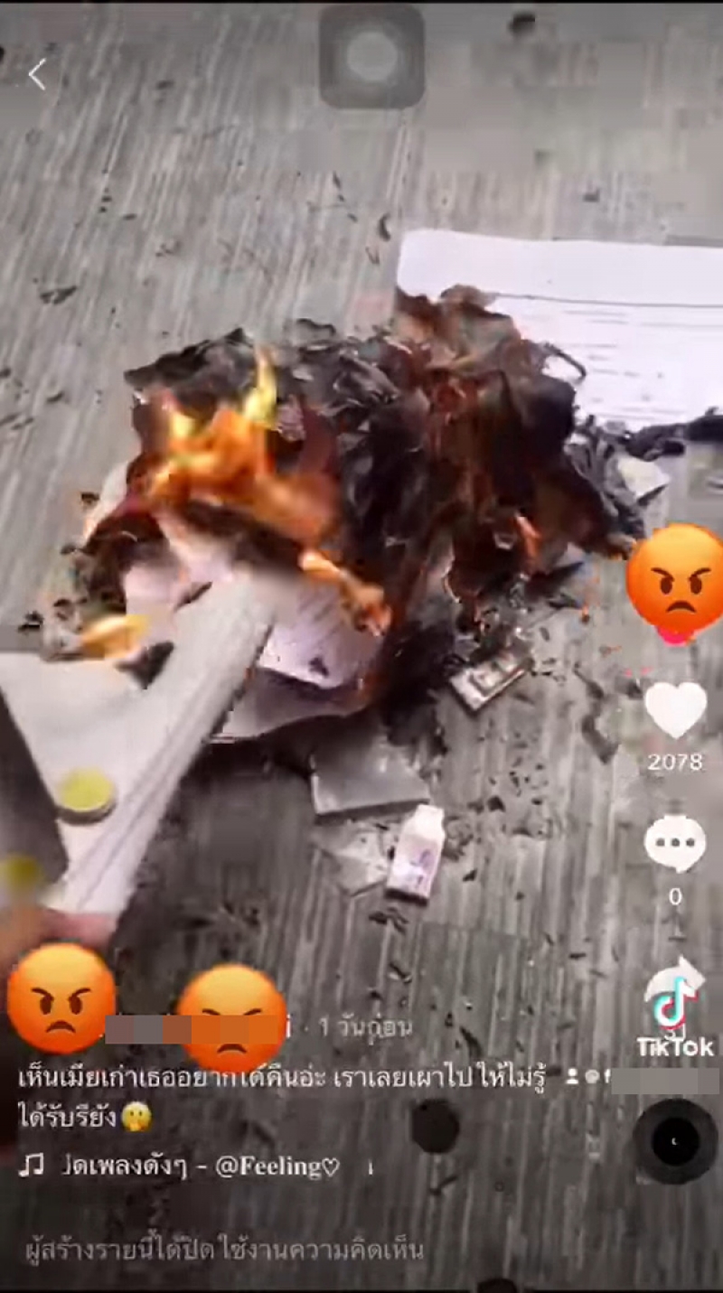 "เห็นเมียเก่าเธออยากได้คืนอะ เราเลยเผาไปให้ไม่รู้ได้รับหรือยัง"