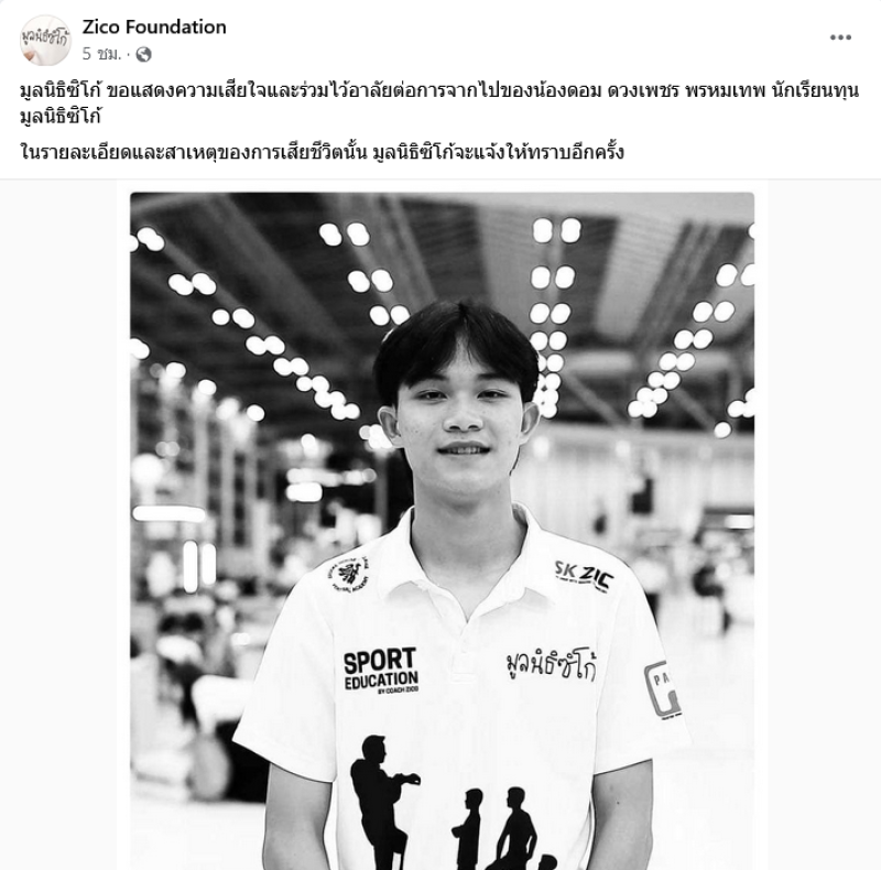 วันที่ 15 ก.พ. จากกรณีที่ทางเฟซบุ๊กเพจ มูลนิธิซิโก้ (Zico Foundation) ได้มีการโพสต์ขอแสดงความเสียใจและร่วมไว้อาลัยต่อการจากไปของน้องดอม ดวงเพชร พรหมเทพ นักเรียนทุนมูลนิธิซิโก้ ซึ่งน้องดอมเป็นหนึ่งในผู้รอดชีวิต จากเหตุการณ์ที่ถ้ำหลวง