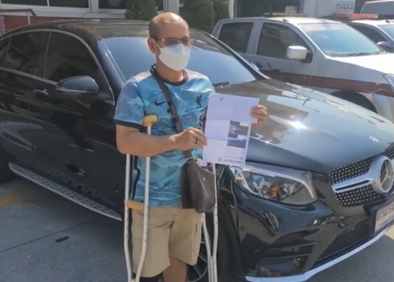 หนุ่มชลบุรี ขาหัก ขับรถไม่ได้ รถคนละสี โดนใบสั่งที่สุรินทร์