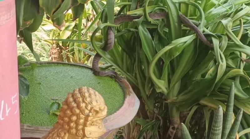 ชาวบ้านฮือฮา งูเลื้อมากินน้ำในอ่าง เชื่อมาให้โชค
