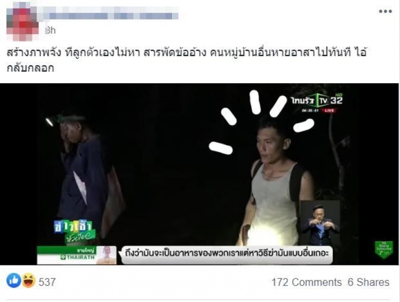 เเต่พอล่าสุดชาวบ้านที่ขึ้นเขาไปหาเห็ดได้หายตัวไป กลับรีบขึ้นเขาไปช่วยค้นหา สร้างภาพจัง ทีลูกตัวเองไม่หา สารพัดข้ออ้าง คนหมู่บ้านอื่นหายอาสาไปทันที