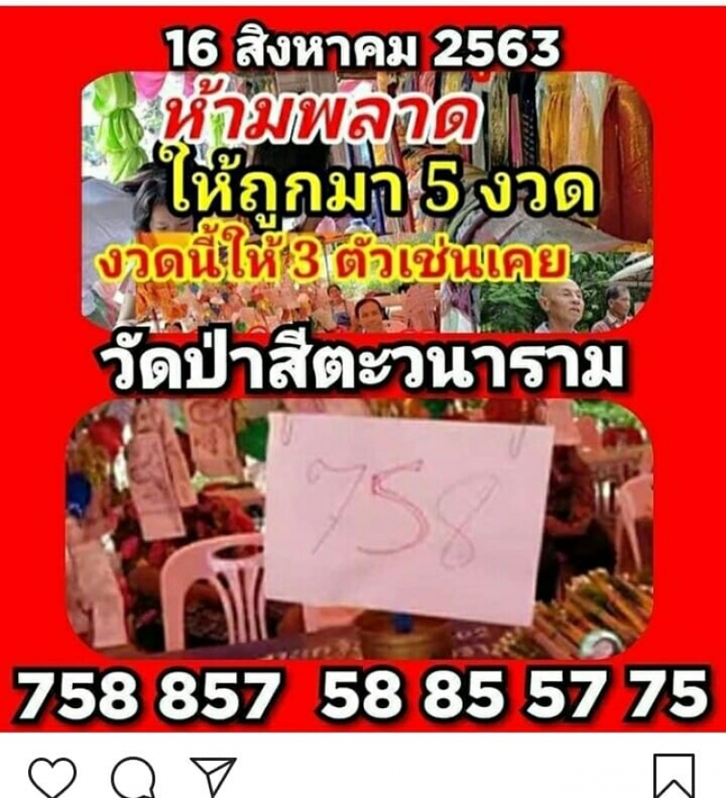 เลขวัดป่า วัดป่าสีตะวนาราม ให้ถูกมาแล้ว 5 งวดติด