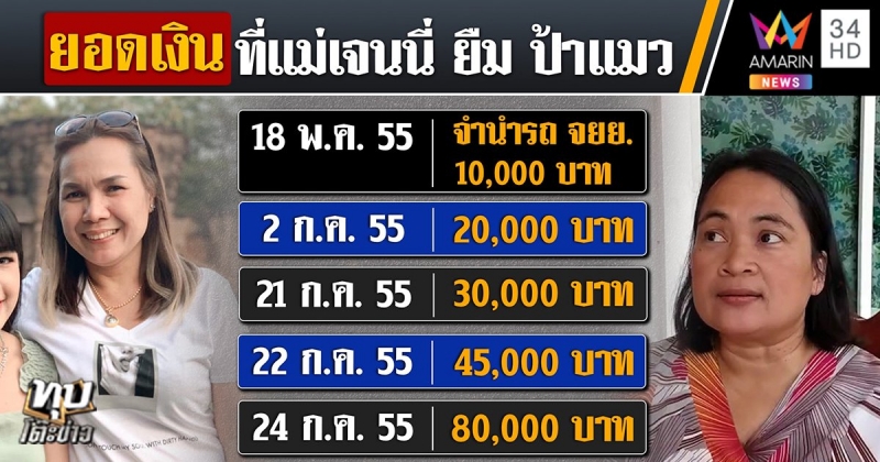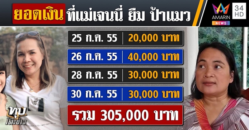 โดยยอดรวมที่ยืม จำนวน 305000 แม่เจนนี่ทยอยชำระมาบ้างแล้วเดือนละ 5000 เหลือยอด 270000 ทั้งนี้ป้าแมว เริ่มฟ้องร้องปี 2559 เขียนสัญญาให้ลูกหนี้ชำระเงิน 140000 และมีหนี้สัญญาใจที่ไม่มีในสัญญาอีก 130,000 แม่เจนนี่มาชำระเงิน วันที่ 25 มีนาคม 2563 จำนวน 100000 บาท
