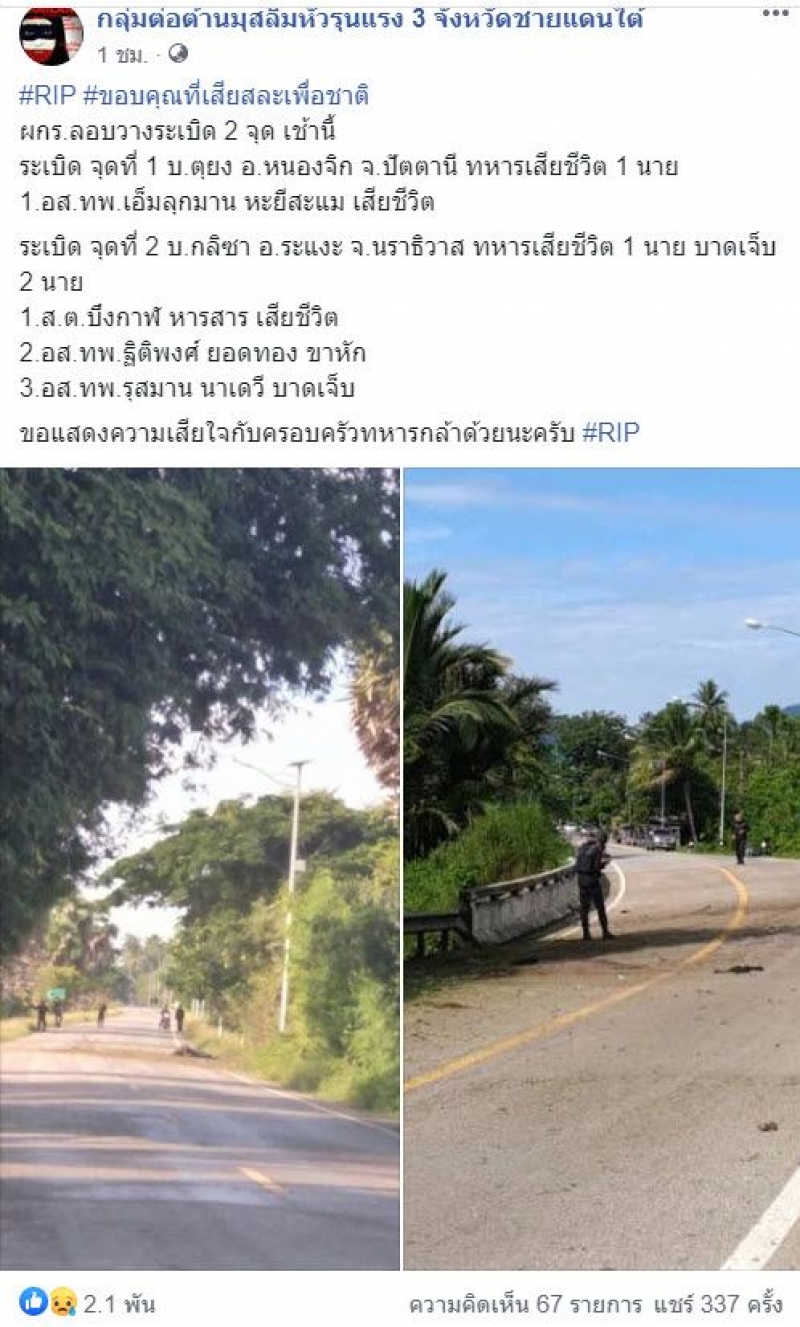 ขอบคุณเพจ กลุ่มต่อต้านมุสลิมหัวรุนแรง 3 จังหวัดชายแดนใต้ และ ศูนย์ประชาสัมพันธ์กองทัพบก Army PR Center