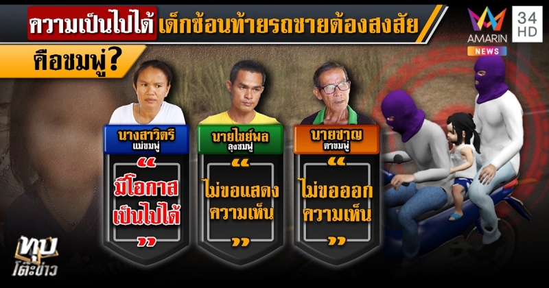 เมื่อสรุปความเป็นไปได้ เด็กซ้อนท้ายรถจักรยานยนต์ชายต้องสงสัย แม่ชมพู่ บอกว่า มีโอกาสเป็นไปได้ ลุงพล บอกว่า ไม่ขอแสดงความเห็น ตาชาญ บอกว่า ไม่ขอออกความเห็น