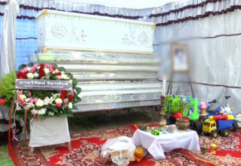 ที่บ้านเลขที่ 333 บ้าาห้วยกลาง ต.กระทูน อ.พิปูน จ.นครศรีธรรมราช ซึ่งเป็นสถานที่ตั้งศพของน้องกองบิน บรรยากาศเต็มไปด้วยความโศกเศร้า น.ส.สุวภัทร ไชยธรรม แม่ของน้องกองบิน เผยว่า เล่าว่า สำหรับช่วงเวลาประมาณ 11.00 น. ของวันที่ 16 ส.ค. ครูสุนิษฐา ผูกพาณิชย์ หัวหน้าศูนย์อบรมเด็ก และครูวิลัยวรรณ ริยาพันธ์ หรือครูหยุ่น ครูเวรที่นั่งรถตู้ในวันเกิดเหตุ ก็ได้เดินทางมาที่บ้านของตน โดยมาบริจาคเงินให้ตน จำนวน 100,000 บาท แต่เงินที่ตนได้รับนั้น ไม่สามารถแลกกับชีวิตลูกชายตนได้ ส่วนสามีของครูสุนิษฐา คนที่ขับรถมารับน้องกองบินในช่วงแรกนั้น เขาไม่ได้มาที่งานศพด้วย ตอนที่ครูทั้ง 2 คนมาถึง เขาก็ได้ขอโทษยายของน้องกองบิน แต่เขาไม่ได้ขอโทษตนแม้แต่สักคำ แม้แต่พูดเขาก็ไม่เอ่ยปากพูดกับตน จากนั้นเขาก็ไหว้ขอขมาศพ ตนจึงพูดขึ้นมาว่า กรวดน้ำให้ลูกหนูหน่อย อย่าได้ต้องจองเวรจองกรรมไปถึงชาติหน้า