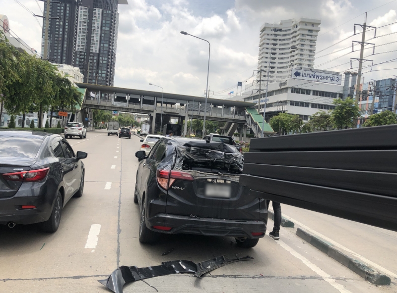วันนี้ 17 ส.ค.63 เวลา ประมาณ 11.10 น. สน.วัดพระยาไกร รายงานเกิดอุบัติเหตุรถชนกันจำนวน 3 คัน บริเวณ ถนนพระราม 3 ซอย 23 ขาเข้า พฤติการณ์คือ รถกระบะโตโยต้า รุ่นวีโก้ ทะเบียน ตต-522 กทม. เบรกรถกะทันหันทำให้เหล็กที่บรรทุกมาเต็มคันรถลื่นไถลพุ่งเข้าใส่รถฮอนด้า HRV สีดำ ทะเบียน 5กฉ-6649 กทม. และเหล็กบางส่วนไหลพุ่งข้ามรถ HRV พุ่งเข้าใส่รถฮอนด้า CIVIC สีขาว ทะเบียน ฆค-7781 ได้รับความเสียหาย เบื้องต้นไม่มีผู้ได้รับบาดเจ็บ พื้นที่ สน.วัดพระยาไกร